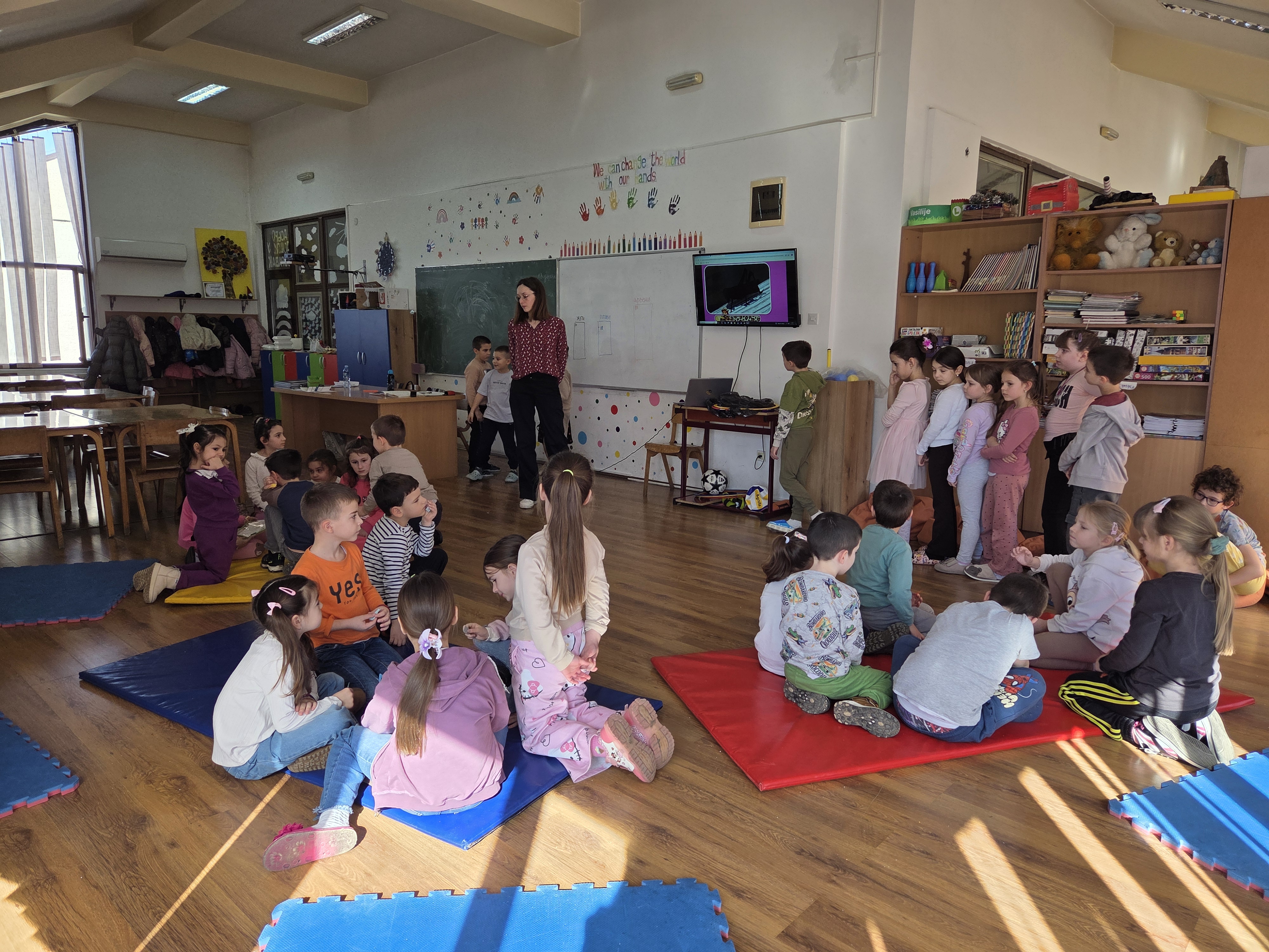 У продуженом боравку наше школе угостили смо предшколску групу из ПУ „Софија Ристић“. Циљ сусрета био је да се будући ђаци упознају са простором, организацијом и концептом продуженог боравка. Домаћини су били ученици првог разреда који су са радошћу поделили своја искуства.