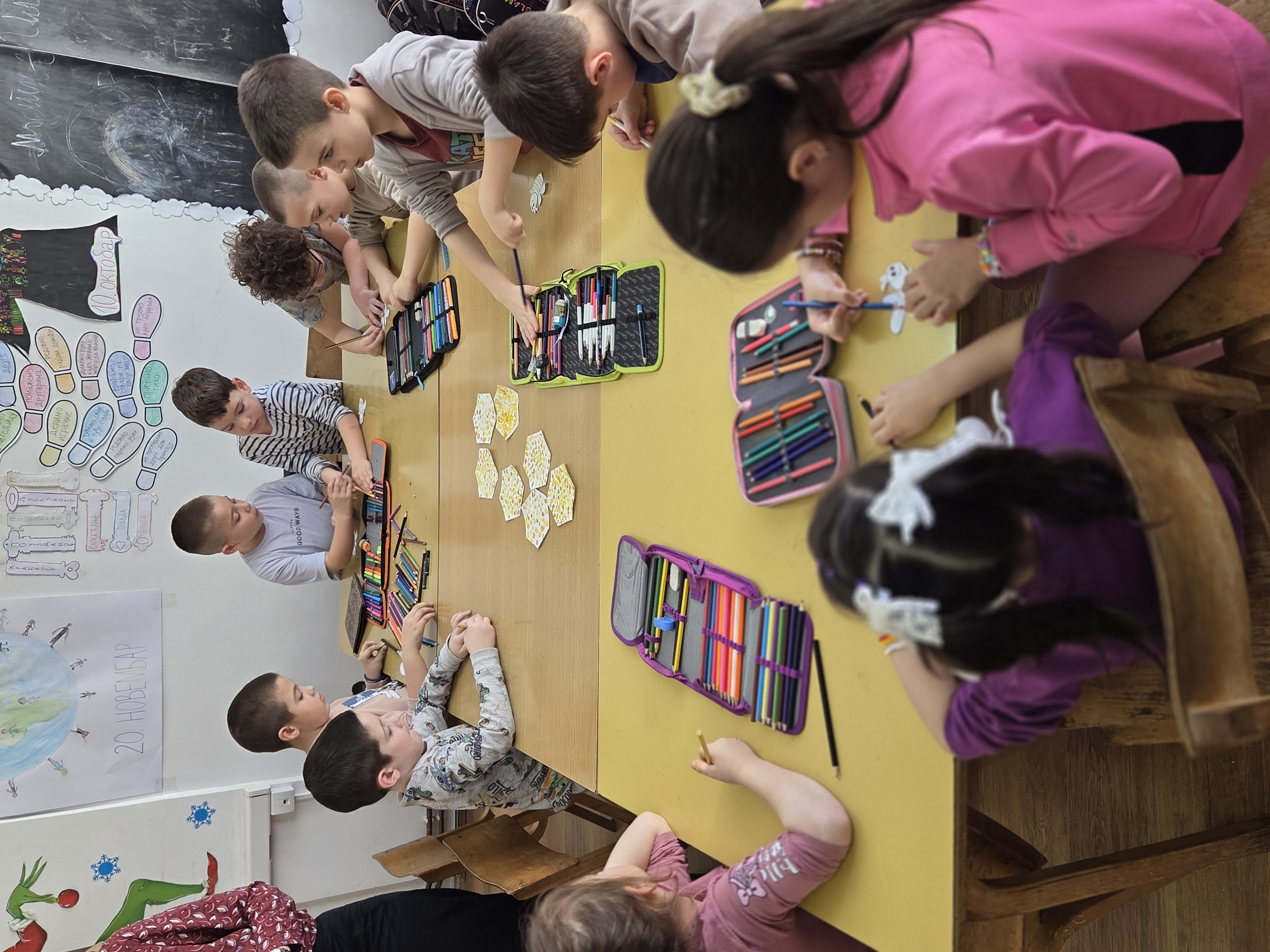 Дружење је настављено креативном радионицом, у којој су деца израђивала саће и пчеле – симбол вредних и одговорних ђака какви се очекује да и сами постану. Пчеле са њиховим именима украшаваће зид продуженог боравка, симболизујући припадност заједници и топлу добродошлицу која их чека када наредне године постану прваци.