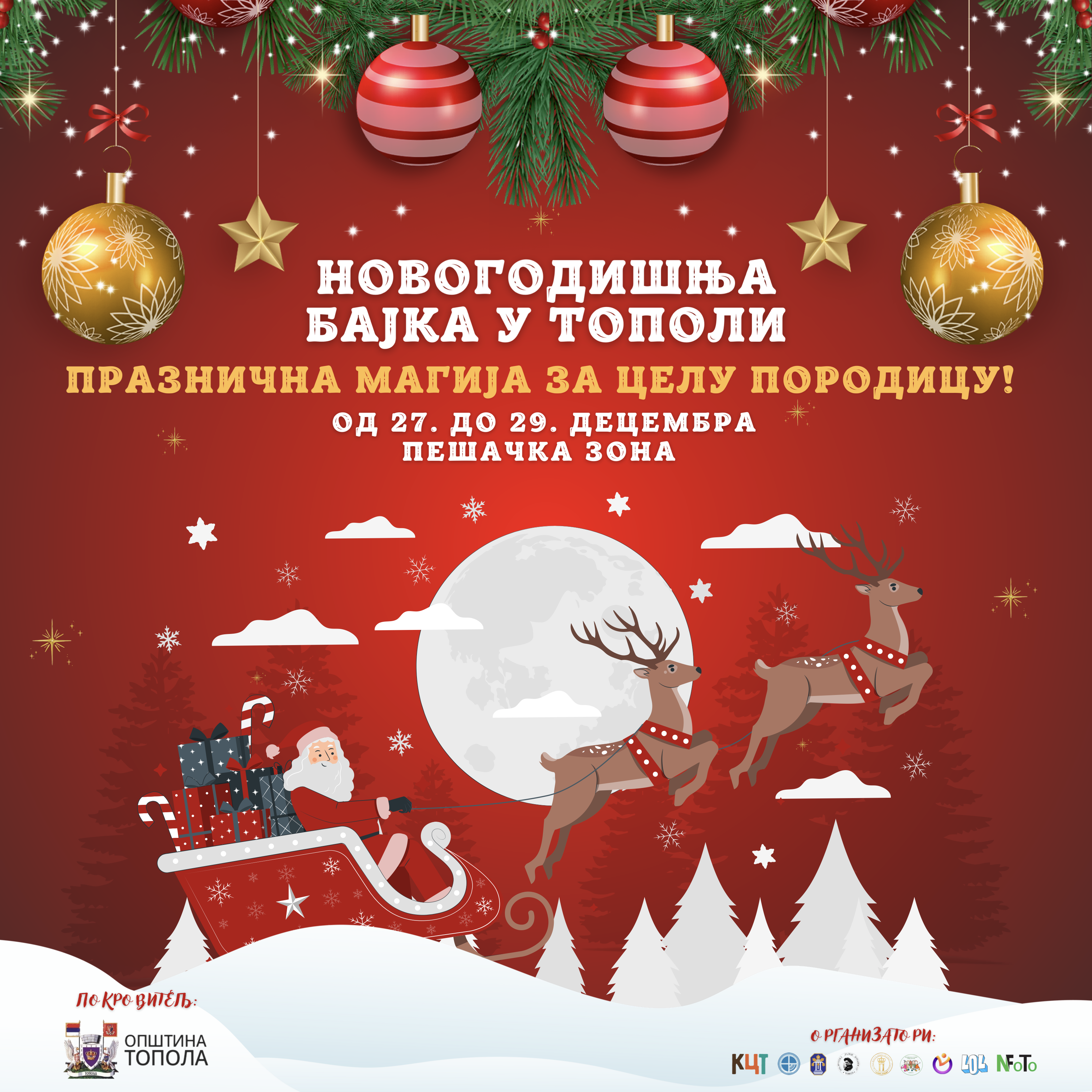 Najavljujemo novogodišnji program koji će se održati od 27. do 29. decembra u pešačkoj zoni pod nazivom "Novogodišnja bajka - Praznična magija za celu porodicu".